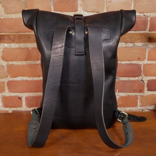 Villeneuve Roll-Top Leather Backpack – Black Edition