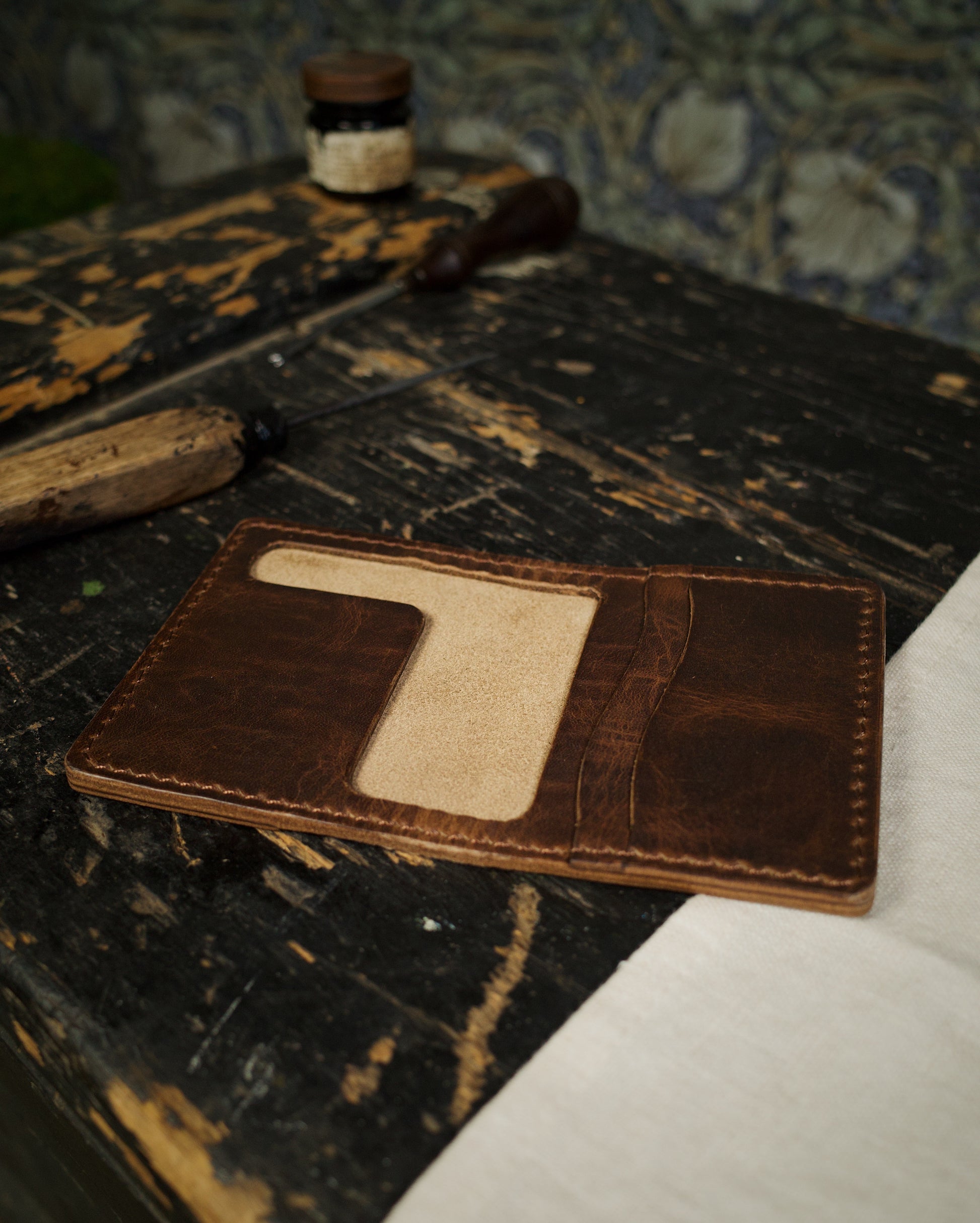 Crafted from full-grain Horween Derby leather, the HoMa is designed to last and improve with time. Each wallet is handstitched with durable Japanese thread for long-term strength and a clean finish.
