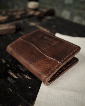 Horween Derby leather develops a deep, natural patina with use. The dark brown tone gains character over time, making each wallet uniquely yours—durable, timeless, and made to be carried daily.