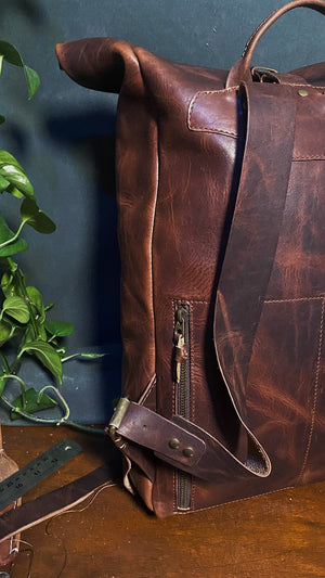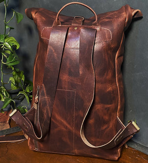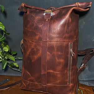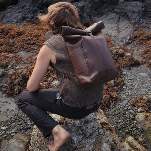 Villeneuve Roll-Top Leather Backpack – Dark Brown Edition